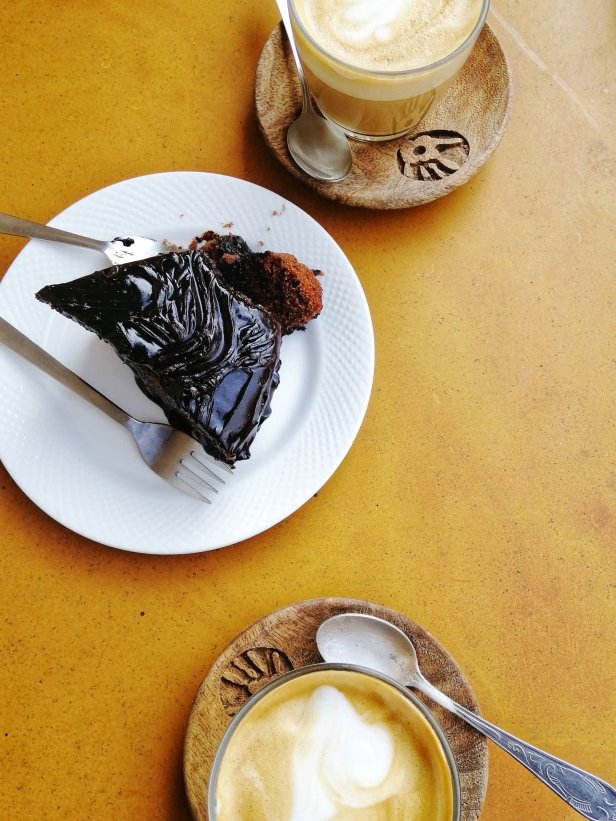 Un godurioso profumo di cannella e cioccolato serpeggia nell’aria ed una vetrina di torte e muffin sembra un’implicito ammonimento dantesco: lasciate ogni speranza voi ch’entrate.